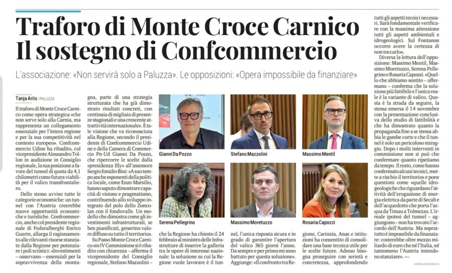 „Ich frage meine Kolleginnen und Kollegen: Seid ihr wirklich zufrieden damit, auf rückständigere Lösungen zu setzen, mit größerer Umweltbelastung in höher gelegenen Bereichen, mit einer massiven Beeinträchtigung eines hochgeschützten Gebiets, dem Risiko von Wintersperren und hohen Erhaltungskosten – wo doch die Experten angeben, dass der Scheiteltunnel hohe Sicherheitsstandards und eine Öffnung 24/7 an 365 Tagen im Jahr gewährleisten würde?“, fragt Mazzolini. „Ich habe niemals den Basistunnel unterstützt; ich habe immer für den Scheiteltunnel gearbeitet – eine moderne, sichere und schnelle Verkehrsverbindung, die einem echten europäischen Pass gerecht wird. Ich erinnere daran, dass ich nicht der Einzige bin, der den Tunnel will: Die regionale Wirtschaft mit Confindustria, der Handelskammer, dem Hotelierverband, der großen Mehrheit der lokalen Verwaltung sowie der Bevölkerung sowohl auf friulanischer als auch auf kärntner Seite unterstützt diese Lösung, da sie sicherer, schneller, moderner ist und stärkere Impulse für die wirtschaftliche Entwicklung, mehr Arbeitsplätze und mehr Tourismus bringt.“