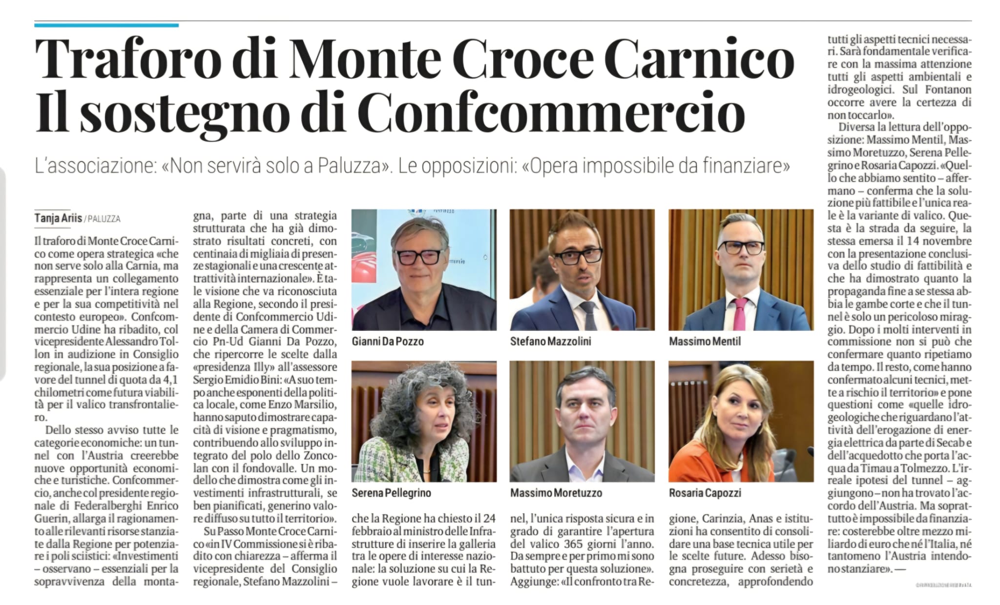„Ich frage meine Kolleginnen und Kollegen: Seid ihr wirklich zufrieden damit, auf rückständigere Lösungen zu setzen, mit größerer Umweltbelastung in höher gelegenen Bereichen, mit einer massiven Beeinträchtigung eines hochgeschützten Gebiets, dem Risiko von Wintersperren und hohen Erhaltungskosten – wo doch die Experten angeben, dass der Scheiteltunnel hohe Sicherheitsstandards und eine Öffnung 24/7 an 365 Tagen im Jahr gewährleisten würde?“, fragt Mazzolini. „Ich habe niemals den Basistunnel unterstützt; ich habe immer für den Scheiteltunnel gearbeitet – eine moderne, sichere und schnelle Verkehrsverbindung, die einem echten europäischen Pass gerecht wird. Ich erinnere daran, dass ich nicht der Einzige bin, der den Tunnel will: Die regionale Wirtschaft mit Confindustria, der Handelskammer, dem Hotelierverband, der großen Mehrheit der lokalen Verwaltung sowie der Bevölkerung sowohl auf friulanischer als auch auf kärntner Seite unterstützt diese Lösung, da sie sicherer, schneller, moderner ist und stärkere Impulse für die wirtschaftliche Entwicklung, mehr Arbeitsplätze und mehr Tourismus bringt.“